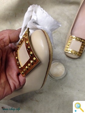 真っ白なウエスに少量クリームを取り、靴全体に点々と塗っていきます。