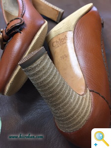 ヒールの存在感が大きい靴なので、キズやヨゴレなどはこのように巻き替え交換することで元に戻ります。